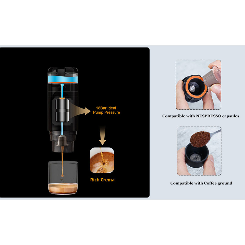 این دستگاه قهوه‌ساز اسپرسو قابل حمل با طراحی مدرن و جمع‌وجور، به گونه‌ای طراحی شده است که به راحتی در کیف یا کوله ‌پشتی شما جا می ‌شود. ابعاد این دستگاه 8*8*22 سانتی ‌متر است که آن را به یک گزینه مناسب برای حمل و نقل تبدیل می‌کند. وزن این دستگاه نیز بسیار سبک است و به راحتی می ‌توانید آن را با خود حمل کنید.