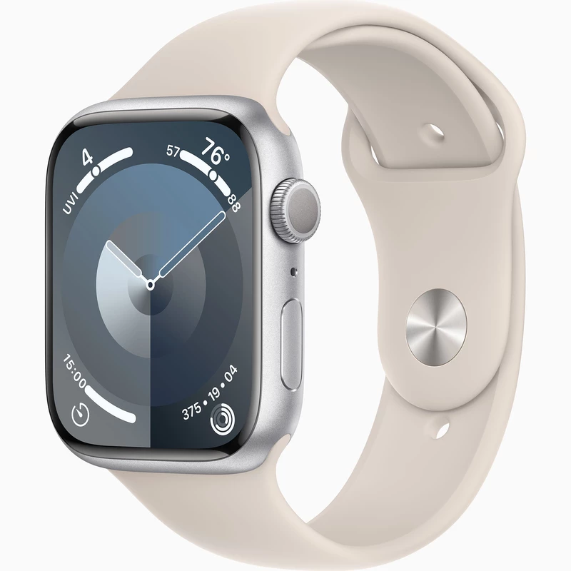 ساعتهای هوشمند اپل همواره توانستهاند با بهره بردن از مشخصات فنی مناسب، عملکرد بسیار خوبی را بهنمایش بگذارد و ساعت هوشمند اپل مدل Series 9 Aluminum 45mm هم یکی از گجتهای پوشیدنی قدرتمند این شرکت است. این ساعت با پشتیبانی از استاندارد IP6X، توانایی مقاومت در عمق 50 متری آب را دارد و میتوانید بدون هیچگونه نگرانی از آن در ورزشهای آبی و شرایط جوی متنوع استفاده کنید. یکی از قدرتمندترین مشخصات در نظر گرفته شده برای این ساعت هوشمند بدون شک صفحهنمایش آن است. صفحهنمایش با ابعاد 1.9 اینچ و رزولوشن 484×396 پیکسل از نوع Retina LTPO OLED که وضوح تصویر بسیار خوب و باکیفیتی را به شما ارائه میکند و از طرفی باید بدانید که میزان روشنایی فوقالعاده 2000 نیت (nits) آن سبب شده تا در شرایط نوری متنوع و حتی زیر تابش مستقیم نور خورشید هم وضوح تصویر بسیار خوب و کاملا خوانایی را از آن شاهد خواهید بود. حضور پردازنده جدید و قدرتمند Apple S9 سبب شده تا این گوشی عملکرد بسیار دقیق و روان را در حالتهای مختلف به شما ارائه کند. از طرفی نرمافزارهای کاربردی و سلامت جذابی هم برای این ساعت در نظر گرفته شده که در کنار حسگرهای قدرتمند، عملکرد بسیار دقیقی دارند. قابلیتهای سلامت همچون شمارشگر ضربان قلب و کنترل میزان اکسیژن موجود در خون هم این ساعت هوشمند را همراهی میکنند. رابط کاربری جذاب این ساعت قابلیتهای کاربردی فراوانی را با خود بههمراه داشته که میتوانیم به واچ فیسهای متنوع و البته امکان پیدا کردن گوشی به وسیله قابلیت مکانیابی را اشاره کنیم. باتری 308 میلیآمپرساعت هم از دیگر مشخصات در نظر گرفته شده است. در مجموع میتوانیم با خیال راحت بگوییم که اگر به دنبال خرید ساعت هوشمند همهچیز تمامی هستید که در هر شرایطی از آن استفاده کنید و عملکرد بسار خوب و باکیفیتی را شاهد باشید، ساعت هوشمند اپل مدل Series 9 Aluminum 45mm میتواند یکی از بهترین گزینههای ممکن برای شما باشد. گفتنیست که قابلیتهای سنجش فشار خون و اکسیژن خون در کشور ایران قابل استفاده نیست.